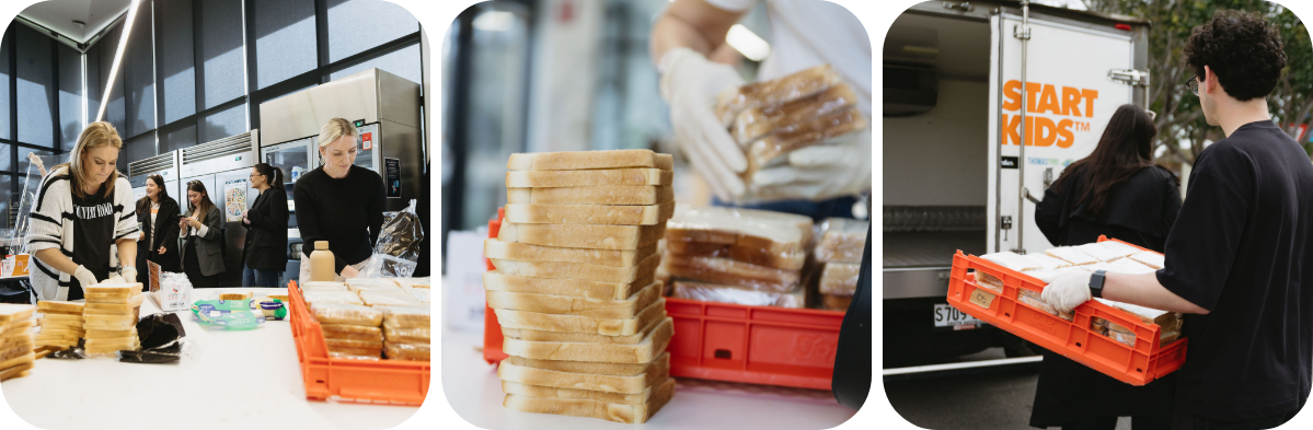 Launched in response to the rising demand for school lunches, and with one in five Australian children living in food insecure households, our newest community-powered initiative, Spread, will offer workplaces a fun, hands on team building experience with a powerful purpose.It is simple, social, and impactful (no ongoing commitment required), yet the difference you make will be felt immediately. In just one hour, your team will work side-by-side to prepare fresh, nutritious sandwiches that go straight to school children who would otherwise go without. Every sandwich you create helps fill a lunchbox, fuel a child’s day, and give them the best chance to learn and grow.